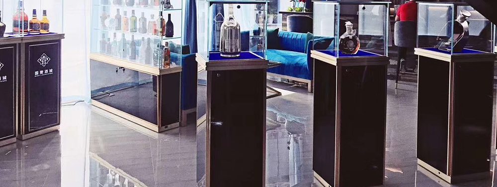 【國酒壹城】玻璃煙酒展柜白酒展示柜—鴻鈦展示 地址:河北省 承德市 雙橋區 柜臺型號:D款矮柜玻璃煙酒展示柜 D款紅酒白酒展示柜精品柜 柜臺尺寸:矮柜1500*600*950mm 精品柜500*500*1500mm 柜臺顏色:玫瑰金色型材、黑色鏡面玻璃 柜臺燈光:LED燈條,正白色燈光 柜臺LOGO:國酒壹城 正白色燈光 柜臺制作:UV板、鋁合金型材(拉絲、抗氧化、防指紋),鏡面玻璃,10mm超白玻璃,臺面粘貼寶藍色短絨布 客戶評價:很滿意,發貨很快,質量出乎意料啊,不愧是專業廠家,值得信賴!有需要會回