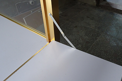 普通玻璃,超白玻璃 | 鋁制磨砂閃銀燈槽,超白玻璃無影膠無縫粘貼 | LED嵌入燈槽內,槽內安全裝電線卡拉,電線不外露安全美觀 |
